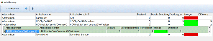 in der Artikelverwaltung bestimmen Sie pro Artikel einen gleichwertigen Ersatzartikel (= Alternativ), welchen Sie dem Kunden - sofern kein Bestand vorhanden ist - schon bei der Verleihprüfung im Angebot anstelle eines nicht vorhandenen Artikels anbieten können: