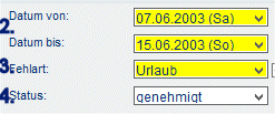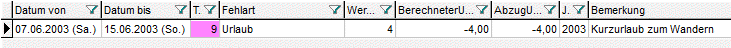 und die Fehlart, wie z.B.: Urlaub eintragen.