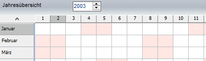 Übernehmen Sie den vorgeschlagenen Urlaub, trägt das Programm den Urlaub in den Jahresplaner ein und zieht den Urlaub vom Jahr ab. Es verbleiben Resttage in diesem Arbeitsjahr.