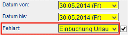 Bei den Fehlarten "Urlaub" und "Urlaub einbuchen":