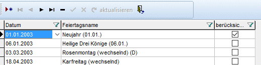 Durch Setzen des Häkchens bei "berücksichtigen", können Sie auch Feiertage ausschließen, wenn es diesen Feiertag z.B. bei Ihnen im Land nicht gibt oder in Ihrem Unternehmen keine Rolle spielt.