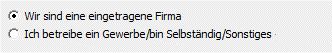 1) klicken Sie an, ob Sie eine eingetragene Firma, oder Geberbetreibender/Selbständiger/Sonstiges sind: