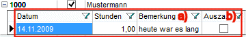 a) die Bemerkung zur Überstunde (falls vorhanden) wird Ihnen angezeigt