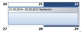 Machen Sie daraus einen mehrtätigen Termin, indem Sie das Terminfeld anklicken und das Einzelfeld ziehen, dann entsteht daraus ein mehrtätiges Ereignis: