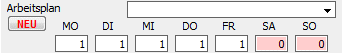 Sie können hier festlegen, welchen Arbeitsplan der Mitarbeiter zugeteilt ist (Halbtags, Vollzeit...)