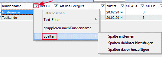 Klicken Sie auf den kleinen Spaltenfilter können Sie über die Auswahl "SPALTEN"