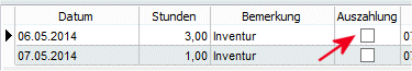 Datum, Stunden, ev. Bemerkung, ev. Häkchen bei Auszahlung setzen