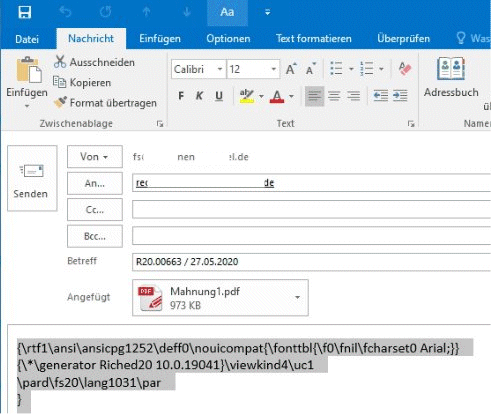 c) Menü Admin. / ProgrammoptionenLOKAL / Emails ... dort lässt sich einstellen, ob ein formatierter Text oder nur ein (reiner) Text verschickt wird. Das müssen Sie probieren, welche Option für Ihr Outlook besser ist.